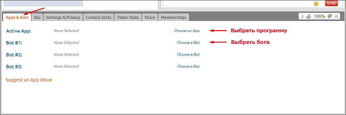 Здесь вы можете включить приложение или бота. Мы рекомендуем приложение Tip Target или бот "All in One Bot". При использовании игрушки Lovense используйте Lovense Bot.