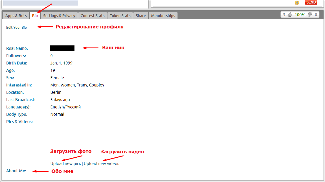 В своем личном кабинете на сайте CamWork вы должны найти такую строчку: