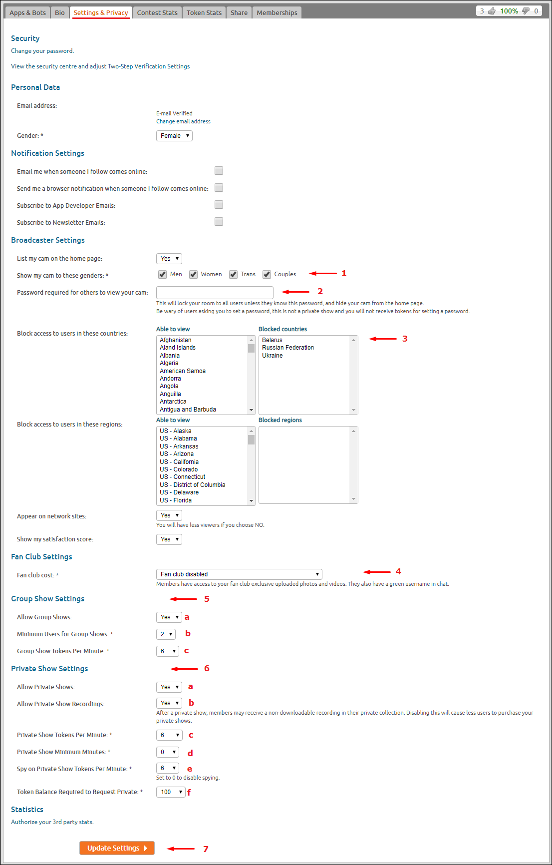 2. Здесь можно установить пароль для Password Show. Это по сути тот же приват, но без возможности подглядывания за ним другими пользователями. Установите пароль и сообщите его мемберу в личном сообщении, но строго только после того как убедитесь что получили от него оплату за это. Проверить наличие токенов вы можете в верхнем правом углу.