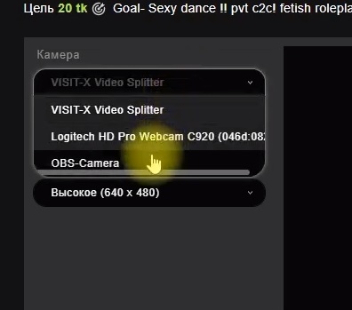 При работе с сайтами в браузере, выбираем в качестве камеры "OBS camera". (рис. 4) А в случае использования второго сайта через OBS , просто повторно открываем OBS и в нем, в качестве источника выбираем "OBS camera". (рис. 5)
