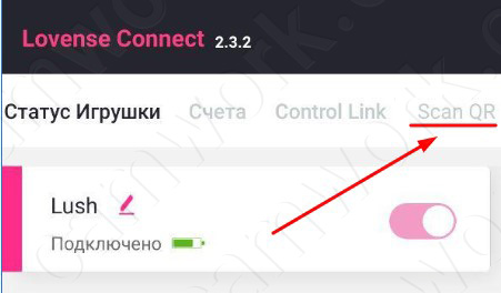 Для подключения и соединения компьютера с самой игрушкой нажимаем в приложении «SCAN QR», откроется камера, подносим к монитору компьютера, где открыта страница с настройкой Lovense и сканируем QR-код.